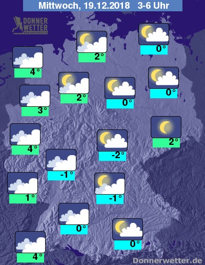 Die Temperaturen liegen noch vor der Dämmerung deutschlandweit zwischen 2 und 6 Grad.