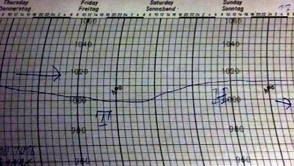 Im Luftdruckverlauf ist die Wetterlagenänderung noch nicht gut zu erkennen, denn noch ist das Hoch über dem Wochenende dominant. Dies ändert sich aber recht schnell.