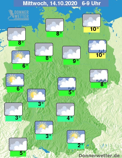 Der Mittwoch startet verbreitet mit einer geschlossenen Wolkendecke, einzelne Lichtblicke beschränken sich in den Frühstunden vor allem auf Gebiete im Süden und Westen des Landes. Vor allem über Sachsen und Teilen Brandenburgs fällt am Mittwochmorgen Regen, der teils auch kräftiger ausfallen kann; sonst bleibt es weitgehend trocken.