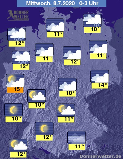 Bis zu den Frühstunden kühlt die Luft auf 14 bis 9 Grad ab, am mildesten bleibt es in den Großstädten Westdeutschlands.