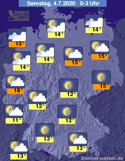 Während der zweiten Nachthälfte setzt vom Emsland ein. Sonst ziehen Wolken auf, die sich mit Mond und Sternen abwechseln. Längere Zeit klar bleibt es von Sachsen, über Bayern, bis nach Baden-Württemberg. Hier können sich jedoch stellenweise Nebelfelder bilden.
