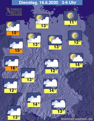In der Nacht überwiegt im norddeutschen Tiefland eine Mix aus lockerer und aufgelockerter Bewölkung, im Nordosten funkeln die Sterne auch von einem wolkenlosen Himmel. Im Süden und Westen des Landes bleibt der Himmel meist bedeckt, im Südosten fällt dabei auch immer wieder Regen.