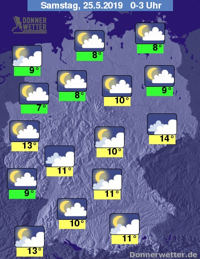 In der Nacht zeigt sich der Himmel über weiten Landesteilen locker bewölkt. Dichtere Wolken können sich vorwiegend zunächst noch an der Nordseeküste und im Südosten halten. Am Hochrhein können in der Nacht einzelne Schauer fallen, sonst bleibt es meist trocken.