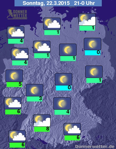Heute Abend ist es im Süden Deutschlands meist leicht oder locker bewölkt, nach Norden hin ist es zumeist aufgelockert, gebietsweise aber ebenfalls locker bewölkt. In den übrigen Landesteilen zeigt sich der Himmel sogar weitgehend sternenklar. Es bleibt überall trocken. Die Abendtemperatur liegt bei teils noch 8 Grad in Stuttgart und um 0 Grad in Neubrandenburg.