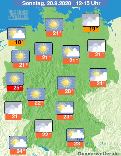 Heute Nachmittag bilden sich im Süden, teils auch im Osten oft einige und teils dichte Wolken, dabei sind an den Alpen lokal Schauer und Gewitter möglich. Im übrigen Bundesgebiet zeigt sich das Wetter hingegen verbreitet heiter bis sonnig, teils sind auch einige Wolken möglich, dabei bleibt es trocken. Die Temperatur steigt auf 18 Grad an der Nordsee und bis 25 Grad im Rheinland.