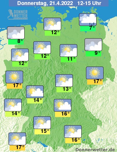 Heute Nachmittag ist es im Norden oft stark, teils auch aufgelockert bewölkt, an der See fällt hier und da etwas Regen, sonst bleibt es weitgehend trocken. Über der Südhälfte des Landes ist es häufig heiter, teils auch sonnig. Vor allem im Alpenvorland ist es auch teils stark bewölkt, jedoch trocken. Die Temperatur liegt bei 7 Grad auf Rügen und etwa 17 Grad am Oberrhein.