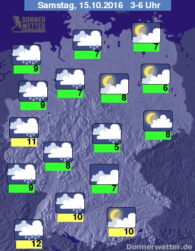 In der folgenden Nacht bleibt es im Osten und Nordosten meist aufgelockert bewölkt und trocken. Im übrigen Land hält sich hingegen dichte Bewölkung und es fällt gebietsweise auch Regen. Die Temperatur sinkt auf 12 bis 7 Grad.