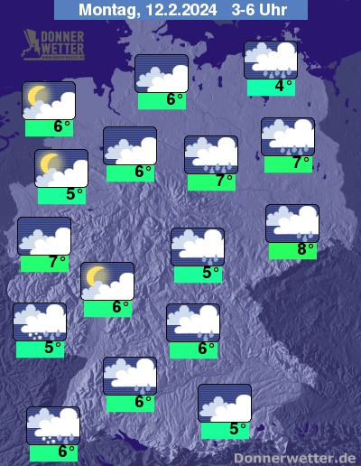 In der Nacht auf Montag bleibt der Himmel überwiegend bedeckt, dabei fällt vor allem im Norden und Nordosten auch noch längere Zeit Regen. In der West- und Nordwesthälfte lassen die Niederschläge in den frühen Morgenstunden bei gebietsweisen Auflockerungen nach.