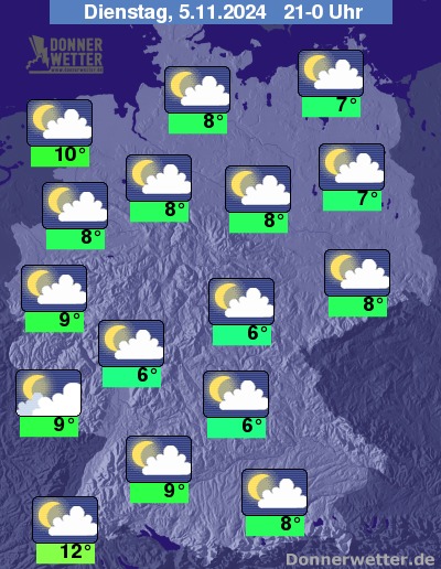 In der Nacht zum Mittwoch ist es sternenklar oder nur gering bewölkt und es bleibt niederschlagsfrei. In den frühen Morgenstunden kann sich dann erneut verbreitet Nebel oder Hochnebel bilden,