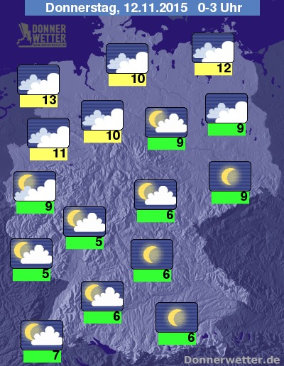 Die Nacht auf Donnerstag bringt nur selten Schauer, allein in Ostfriesland bis runter ins Münsterland können in den frühen Morgenstunden des Donnerstag einzelne Schauer fallen. In den mittleren und östlichen Landesteilen überwiegt wechselnde Bewölkung, im Süden klart der Himmel häufig auf.