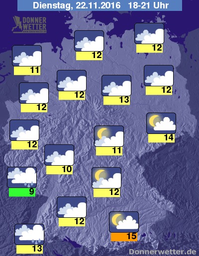 Heute Nachmittag ziehen über den Südwesten Deutschlands verbreitet dichte Regenwolken hinweg, auch sonst zeigt sich das Wetter in weiten Teilen des Landes stark bewölkt, jedoch dazu weitgehend trocken. Die größten Chancen für Auflockerungen bestehen im Osten, Südosten und auch über Teilen von Niedersachsen und Schleswig-Holstein. Die Temperatur liegt bei recht milden 10 bis 15 Grad.