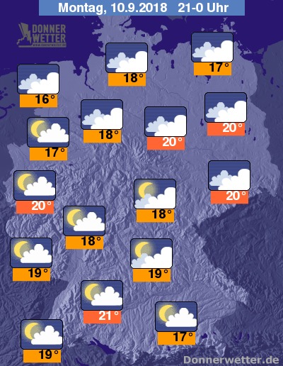 Die Temperaturen liegen am Abend bei angenehmen 20 Grad C in Emden und um 27 Grad C im Breisgau.