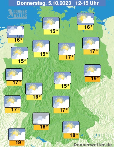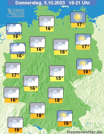 Heute Abend ist es oft stark, teils aufgelockert bewölkt. Im Nordosten heitert der Himmel verbreitet auf. Im westlichen Niedersachsen bilden sich gebietsweie Schauer, während es sonst weitgehend trocken bleibt. Die Temperatur liegt bei 15 Grad in Erfurt und 19 Grad in München.