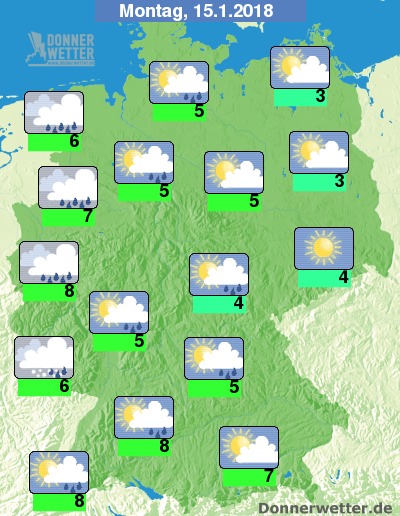 Nach teils frostiger Nacht scheint in der Südosthälfte unseres Landes nach Auflösung teils zäher Nebelfelder oder hochnebelartiger Bewölkung die Sonne. Im Nordwesten verdichtet sich die Wolkendecke mit spürbar auffrischendem Südwestwind im Laufe des Vormittags immer weiter und zum Nachmittag setzt Regen ein. Dieser Regen erreicht im Laufe des Abends auch die südlichen und östlichen Landesteile und geht hier in der kälteren Luftmasse teilweise in Schnee über. Die Höchsttemperaturen liegen im Osten zwischen 0 und 4 Grad, sonst werden 4 bis 9 Grad erreicht.