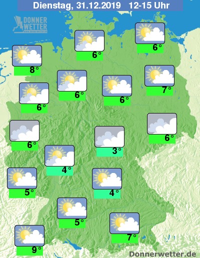 Das Jahr 2019 geht wettermäßig ruhig und unspektakulär zu Ende. Abgesehen von teils dichteren durchziehenden Wolkenfeldern oder regionaler Nebelfelder, lässt sich auch gelegentlich die Sonne blicken. Es bleibt allgemein niederschlagsfrei.
