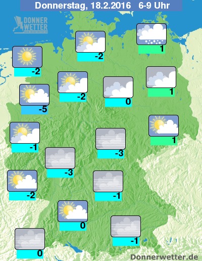 Am Morgen hält der Schneefall an der Ostseeküste nur noch kurz an. In Bayern ist es ein nebeliger Morgen mit Minusgraden. Im Emsland geht die Sonne mit klarem Himmel auf. In Berlin stockt der letzte Schnee. Der westliche Teil ist wechselhaft wolkig und heiter.
