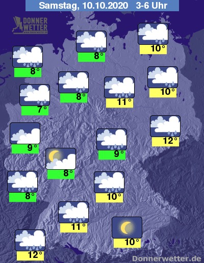 Während der zweiten Nachthälfte regnet es vom Oberrhein bis nach Sachsen zeitweise leicht bis mäßig. Auch an der See sowie in Schleswig-Holstein kann es nass werden. Sonst bleibt es abgesehen von kurzen Aufklarungsabschnitten eher dichter bewölkt.