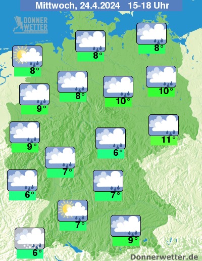 Am Nachmittag zeigt sich der Himmel wechselnd oder stark bewölkt, dabei muss im Verlauf immer wieder mit Schauern gerechnet werden, auch einzelne Graupelschauer und Gewitter sind möglich. Im Bergland fällt oberhalb von 600 m Schnee.