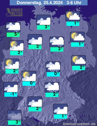 Die Temperaturen erreichen am Nachmittag Höchstwerte um 6 Grd im Südschwarzwald und 11 Grad in Dresden.