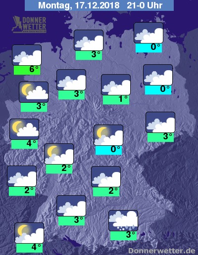 In den Abendstunden bleibt der Himmel über weiten Landesteilen bedeckt, regional kann es auch mal auflockern. Zunächst muss vielerorts noch mit Regen-, in der Südhälfte auch Schneeregen- oder Schneeschauern gerechnet werden; im weiteren Abendverlauf klingen die Niederschläge dann aber häufig ab.