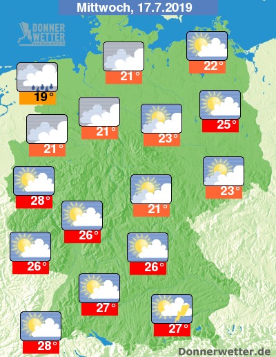 Die Temperaturen erreichen Werte um 19 Grad in Ostfriesland und um 28 Grad im Breisgau.