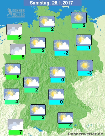 Heute zeigt sich das Wetter meist recht freundlich mit einem Mix aus Sonne und überwiegend lockeren bis aufgelockerten Wolken. Sonnig ist es vor allem über Sachsen und im Ostseeumfeld. Teils dichte Wolken halten sich über dem Südwesten und dem Niederrhein, jedoch bleibt es auch hier trocken. Die Temperatur erreicht -3 Grad in Dresden und bis 7 Grad in Freiburg.