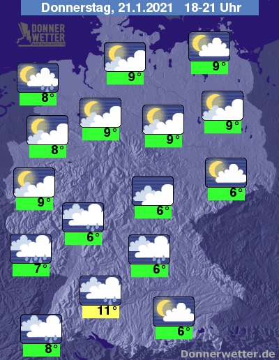 Die Temperaturen liegen zunächst noch zwischen 6 und 11 Grad und gehen bis zum späten Abend auf 2 bis 8 Grad zurück.