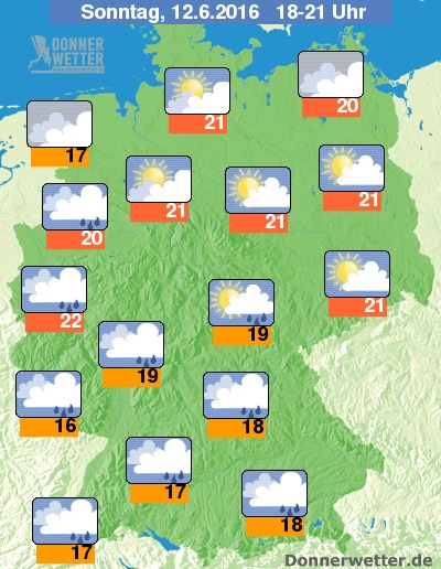 Die Vorbereitungen zum Public-Viewing oder zu den beliebten Gartenparty vor unserm Länderspiel gegen die Ukraine (21 Uhr) dürfte am Abend doch oft von Schauern und auch einzelnen Gewittern gestört werden. Im Norden und Osten können wir Fussballfreunde jedoch überwiegend auf trockenes und auch zeitweise freundliches Wetter mit Sonnenschein setzen. Sonst sieht es bei teils nassen Bedingungen eher nach einem feucht-fröhlichen oder nasskühlen Fussballgenuß aus. Die Temperatur liegt bei 17 Grad in Ostfriesland und 22 Grad in Köln.