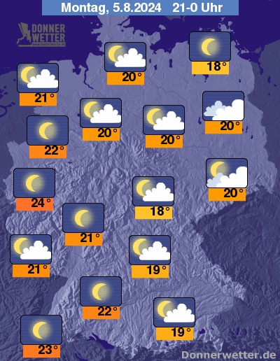 Die Temperaturen gehen in den frühen Morgenstunden zurück auf Werte um 18 bis 12 Grad.