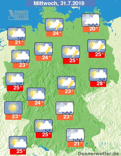 Die Höchsttemperaturen liegen meist zwischen 20 und 28 Grad, am wärmsten wird es dabei in Sachsen, am kühlsten an der Ostsee.