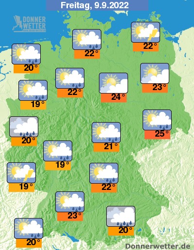 Am Freitag zeigt sich der Himmel über weiten Landesteilen wechselnd bewölkt, dabei muss im Tagesverlauf in weiten Landesteilen mit Schauern und lokalen Gewittern gerechnet werden. Häufiger trocken bleibt es am Freitag im Osten und Südosten Deutschlands.
