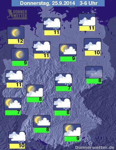 In der Nacht zum Donnerstag können immer wieder teils dichte Wolken durchziehen, dazu fällt zeitweise auch Regen. Freundlicher und meist trocken bleibt es im Nordwesten des Landes, hier kann der Himmel auch häufig aufklaren. Die Temperatur sinkt auf 12 Grad im Emsland und etwa 7 Grad am Rande des Hunsrücks.