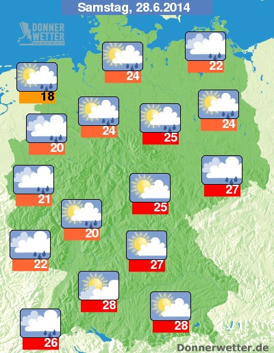 Heute ist es meist wechselhaft mit vielen Wolken und auch möglichen sonnigen Abschnitten. Dabei können sich immer wieder Schauer, zum Teil auch Gewitter entwickeln. Vor allem im Süden und Südosten bleibt es aber überwiegend freundlich und trocken. Die Temperaturen steigen auf 18 Grad an der Ems und rund 28 Grad in Schwaben.