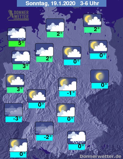 Häufig bewölkte Nachtstunden, Tiefstwerte um 5 bis -3 Grad.