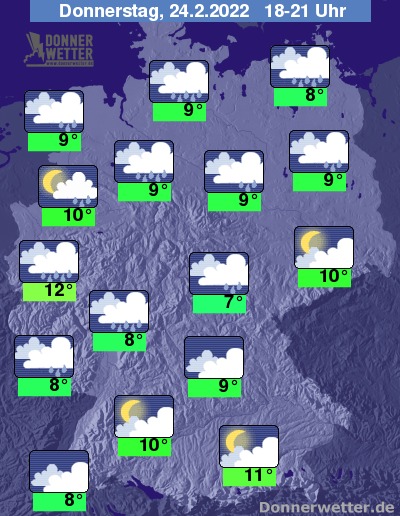 Heute Abend ist es im Süden meist locker bis aufgelockert bewölkt und hier bleibt es noch trocken. Im übrigen Land ziehen meist viele und überwiegend auch dichte Wolken durch, dazu fällt zeitweise Regen. Die Temperatur liegt bei 7 Grad in Erfurt und um 12 Grad in Köln. Im Norden weht ein teils stürmischer Wind. An den Küsten herrscht oft sogar Sturm.