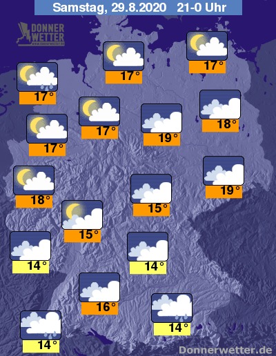 Die Temperaturen gehen bis zum späten Abend auf Werte um 19 bis 14 Grad zurück.
