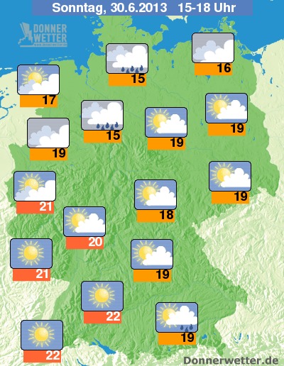 Am Sonntag macht sich der zunehmende Hochdruckeinfluss von Südwesten her bemerkbar. Es lockert mehr und mehr auf, die Temperaturen steigen an. Im Norden kann es häufiger noch regnen.