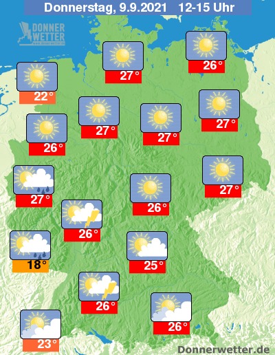 Heute Mittag und am frühen Nachmittag ist es über dem Norden und Osten der Republik noch häufig sonnig und es bleibt trocken. Im Süden und Westen sind bei wechselnder Bewölkung bereits einzelne Schauer und Gewitter möglich. Vereinzelte Starkregenfälle (>20 l/m² in kurzer Zeit) können nicht ausgeschlossen werden.