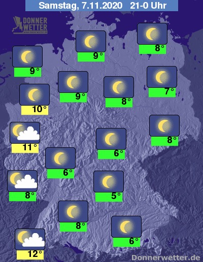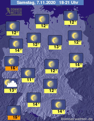 Die Temperaturen gehen am späten Abend auf Werte um 12 Grad am Oberrhein und um 5 Grad im Altmühltal zurück.