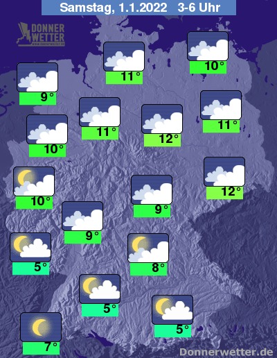 In der kommenden Nacht ist es über dem Süden meist locker bewölkt oder sternenklar. Im übrigen Bundesgebiet ist es hingegen verbreitet stark bewölkt oder bedeckt, dazu bleibt es aber weitgehend trocken. Die Temperatur sinkt auf 12 Grad in Magdeburg und bis 5 Grad in München.