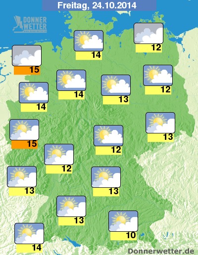 Heute hält sich besonders im Süden gebietsweise noch längere Zeit Nebel oder Hochnebel, sonst kann sich bei verbreitet wechselnder Bewölkung aber auch häufig die Sonne zeigen. Im Norden halten sich hingegen auch dichte Wolken, dabei kann im Nordseeumfeld gelegentlich etwas Regen fallen, sonst bleibt es aber trocken. Die Temperatur steigt auf 10 Grad in München und rund 15 Grad im Rheinland.