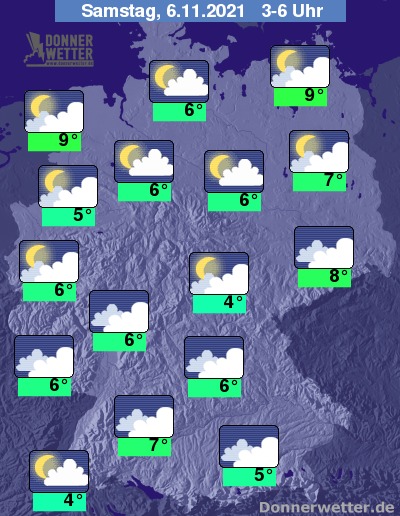 In der kommenden Nacht bleibt es vor allem über der Südhälfte der Republik meist trüb oder stark bewölkt, weiter nach Norden hin ist es hingegen vielerorts auch nur locker bis aufgelockert, teils aber auch stark bewölkt. Es bleibt weitgehend trocken bei Tiefstwerten von 9 Grad in Rostock und bis 4 Grad in Erfurt.