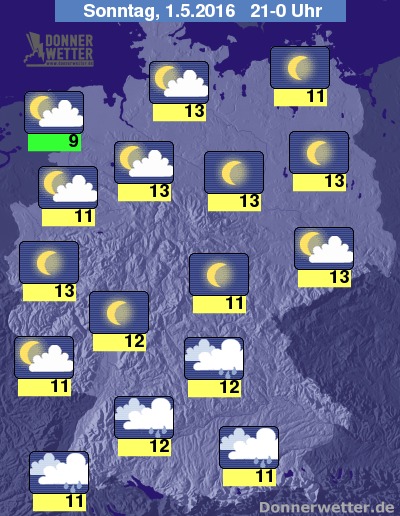 Heute Abend bleibt es im süddeutschen Raum sowie über Sachsen meist stark bewölkt, der Regen zieht sich allerdings immer weiter zum Alpenrand hin zurück, sonst bleibt es mehr und mehr trocken. Im Nordwesten und Norden ziehen oft lockere Wolkenfelder übers Land, im übrigen Bundesgebiet ist es hingegen sternenklar, dabei bleibt es auch trocken. Die Abendtemperatur liegt bei milden 13 Grad in Hoyerswerda und etwa 9 Grad in Papenburg.
