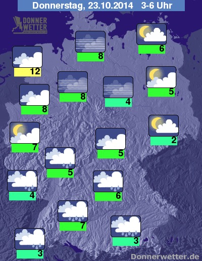In der kommenden Nacht fällt vor allem im Süden und Südosten verbreitet anhaltender und teils kräftiger Regen, in höheren Lagen fällt teils kräftiger Schnee. In den anderen Landesteilen ist es teils stark, teils aufgelockert bewölkt und es fällt gelegentlich Regen. Stellenweise bildet sich zum Morgen hin Nebel. Der Wind weht im Süden und Südosten noch vielfach frisch bis stark, in Böen auch teils stürmisch, sonst weht meist nur noch schwacher bis mäßiger Wind. Die Temperatur sinkt auf 12 Grad direkt an der See und bis 2 Grad am Fuße des Erzgebirges.