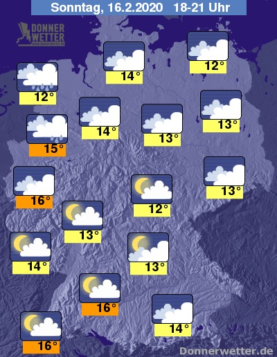 Heute Abend bringen dichte Wolken von NRW, über Niedersachsen bis Vorpommern und nordwestlich davon dichte Wolken mit Regen. Oft aufgelockert, zunehmend aber auch stark bewölkt ist es über der Südosthälfte des Landes, hier bleibt es trocken. Die Temperatur liegt bei sehr milden 12 Grad im Thüringer Becken und bis 16 Grad entlang des Rheins. Über der Nordwesthälfte Deutschlands weht ein verbreitet starker und teils stürmischer Wind, auf den Bergen und an der See herrscht oft Sturm.
