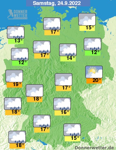 Am Samstag zieht verbreitet starke bis dichte Bewölkung durch, kurze Auflockerungen sind zumindest möglich. Im Tagesverlauf bilden sich hier und da einzelne Schauer. Die Temperatur steigt auf kühle 12 Grad in Meppen und bis 20 Grad in Dresden.