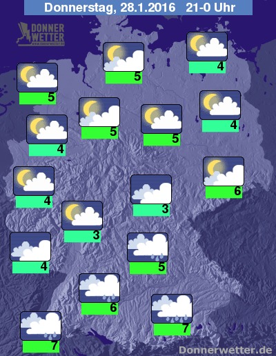 Heute Abend fällt im Süden unter dichten Wolken weiterhin zeitweise Regen. Über der Nordhälfte Deutschlands lockert die Bewölkung mehr und mehr auf und gegen Mitternacht ist es hier meist nur noch leicht oder locker bewölkt, dazu bleibt es trocken. In den übrigen Landesteilen bleibt es zwar stark bewölkt, aber weitgehend trocken. Die Abendtemperaur liegt bei 7 Grad in Freiburg und etwa 3 Grad am Westerwald. An der Nordsee weht teils starker Wind.