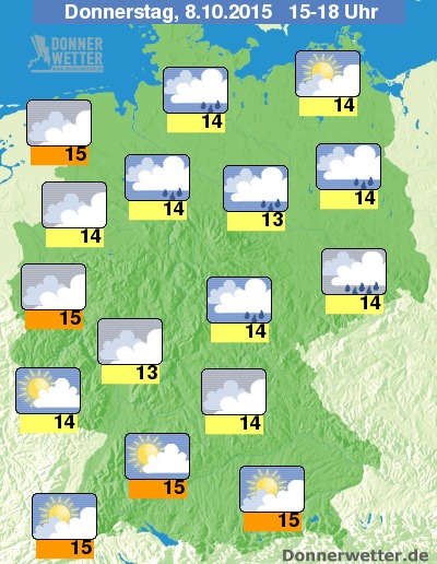Heute Nachmittag kann sich im Süden bei oft lockerer oder aufgelockerter Bewölkung vielerorts die Sonne zeigen, dazu bleibt es hier weitgehend trocken. In den nördlicher gelegenden Landesteilen ziehen hingegen überwiegend dichte Wolken durch und es fällt auch immer wieder, zum Teil auch langanhaltender Regen. Im äußeren Nordosten Deutschlands kann die Bewölkung öfters auflockern, hier bleibt es weitgehend trocken. Die Temperatur steigt auf 13 Grad am Westerwald und bis etwa 15 Grad im Breisgau.
