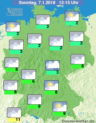 Heute Nachmittag bleibt es im Land verbreitet neblig-trüb oder stark bewölkt. Die besten Chancen für Auflockerungen bestehen im Umfeld der Küsten und hier und da auch im süddeutschen Raum. Im Osten ist hier und da etwas Regen oder Schneeregen möglich, sonst bleibt es aber weitgehend trocken. Die Temperatur liegt bei 2 bis 11 Grad.