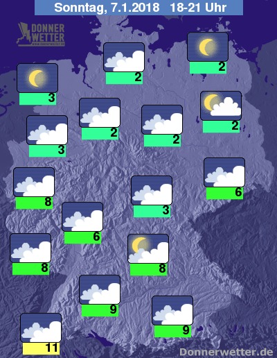 Heute Abend klart der Himmel über Norddeutschland mehr und mehr auf. Weiter südlich hält sich hingegen meist starke Bewölkung. Es bleibt landesweit trocken bei Werten zwischen 2 und 11 Grad.